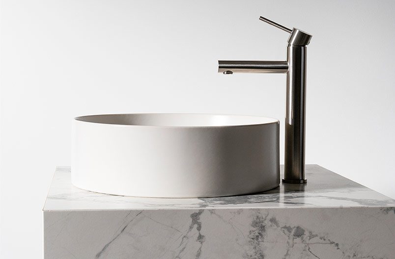 Notre mission est de faire disparaître toute rupture entre la pierre et l’équipement. Grâce à un usinage de haute précision dans notre atelier de Grigny, chaque cuve, chaque mitigeur ou accessoire trouve sa place avec justesse et finesse.